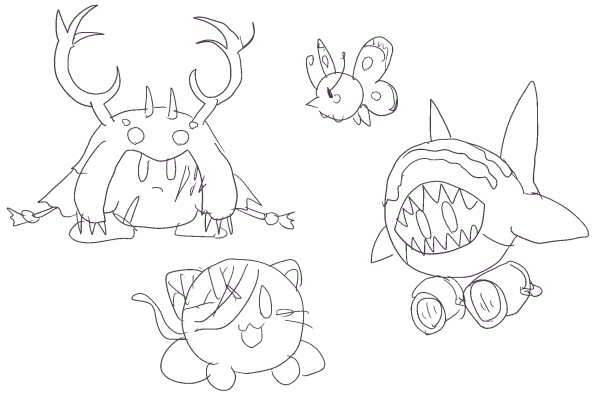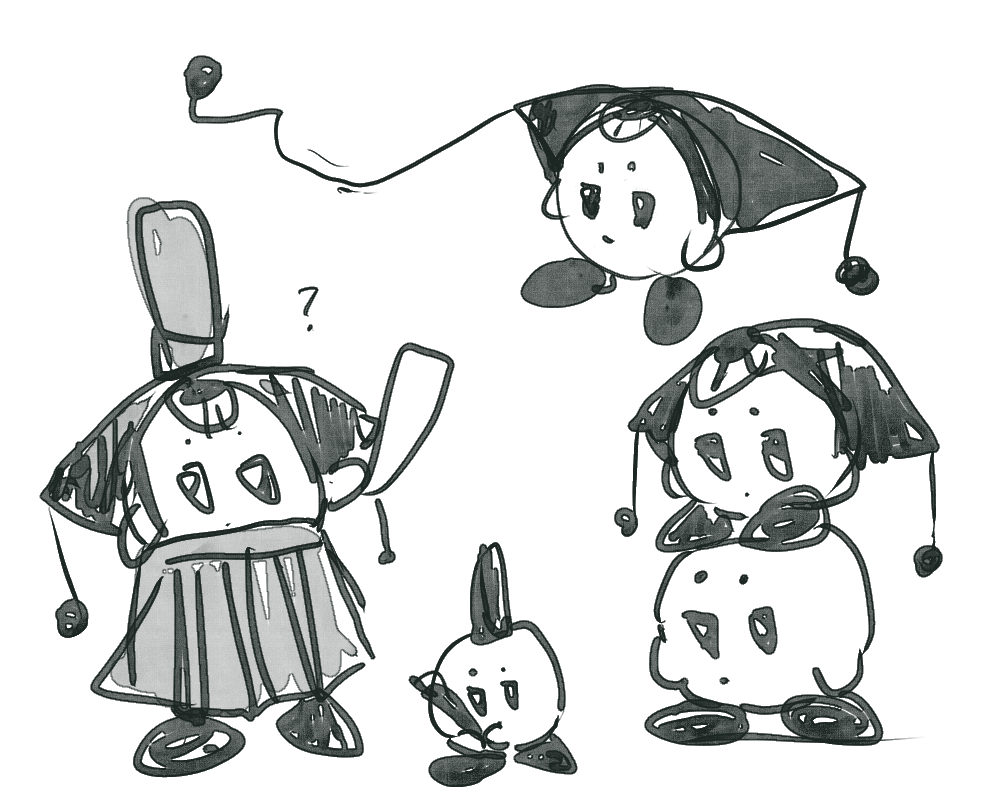 最初はカーベルに関連する感じで、ゴーストとかゾンビとか死霊使いとか宗教家とか同業者とかを考えていたのですが、イマイチ良い感じのデザインが思い浮かばなかったので